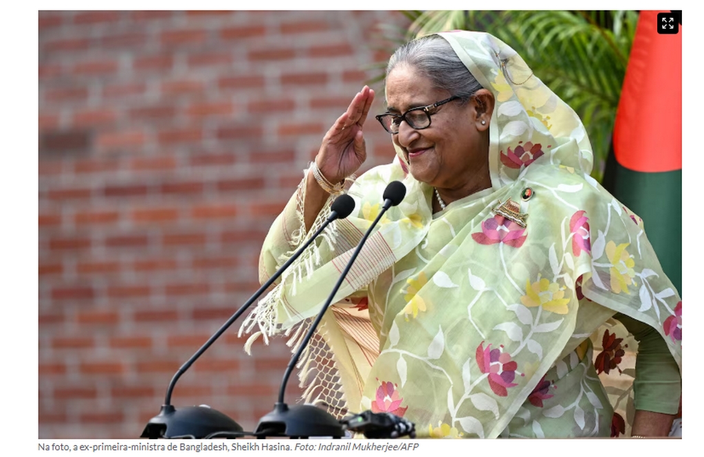 Na foto, a ex-primeira-ministra de Bangladesh, Sheikh Hasina. Foto: Indranil Mukherjee/AFP
