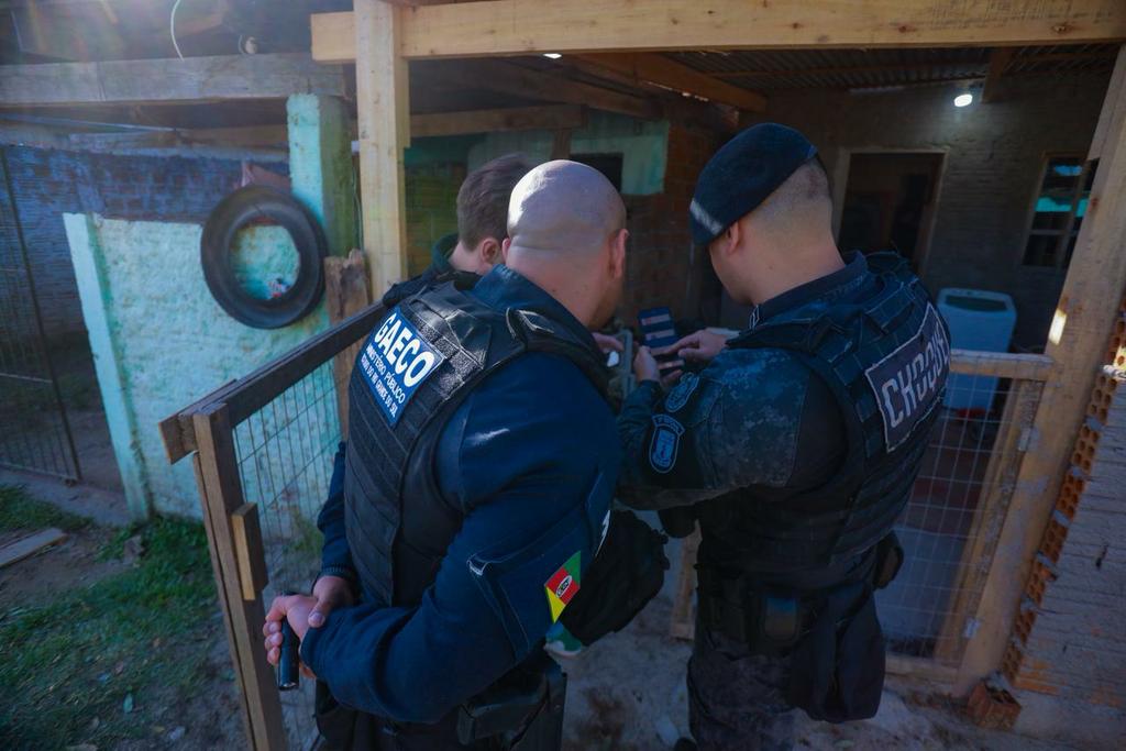 Foto: O Grupo de Atuação Especial de Combate ao Crime Organizado do Ministério Público do Rio Grande do Sul (GAECO/MPRS) deflagrou nesta quarta-feira, 19 de novembro, a terceira fase da Operação El Patron. Depois de mais de um ano de investigação, 27 criminosos foram identificados, sendo 22 deles alvo de prisão preventiva em Pelotas, no Presídio Regional (PRP), em Capão do Leão e Camaquã. Também foram cumpridos 27 mandados de busca e apreensão, e sequestro judicial de oito veículos. O total movimentado desde 2024 por uma facção, que atua na região usando dinheiro do tráfico e da agiotagem para lavagem de capitais, ultrapassa R$ 107 milhões.