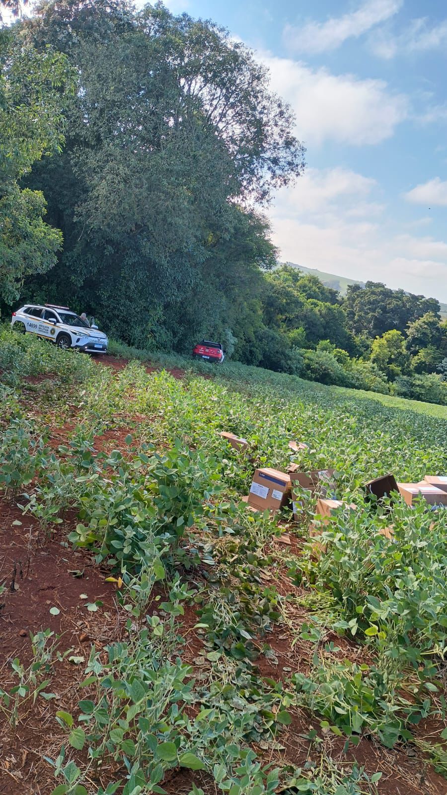 A ocorrência teve início após a sala de operações receber uma ligação informando sobre um furto em uma empresa do município, onde indivíduos levaram uma camionete e produtos (agrotóxicos) do local. De imediato, as guarnições deslocaram-se até a empresa e iniciaram as buscas, localizando o veículo em uma lavoura.