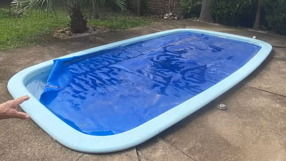 O registro policial informa que a localização da criança ocorreu “em um momento de lapso de todas as pessoas que estavam na casa”. Conforme apurado, a piscina estava coberta por uma lona de cor azul.
