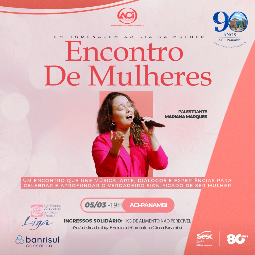 Foto: Em homenagem ao Dia da Mulher, a ACI-Panambi realiza o Encontro de Mulheres, uma noite especial que une música, arte, diálogos e experiências para celebrar e aprofundar o verdadeiro significado de ser mulher. 🌷