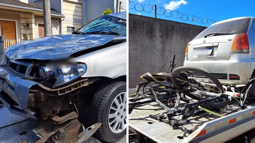 O condutor do veículo, de 42 anos, fugiu do local após a colisão, mas deixou a placa dianteira do carro em meio aos destroços. A polícia identificou o veículo, emplacado em Gramado.
