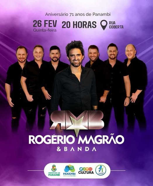 E nesta quinta-feira a comemoração promete ser inesquecível! A partir das 20h, na rua coberta, teremos Rogério Magrão e Banda para abrilhantar a noite e colocar todo mundo para dançar! Será um espetáculo cheio de alegria, música boa e aquela energia contagiante que só Panambi tem!